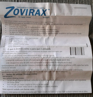 I've been sick with a fever and my lips broke. I went to a pharmacy in Boavista and the pharmaceutical advised me to rub some Zovirax on my lip. She charged me 6.95 Euros for one dispenser. Expensive, but when it comes to health, I try not to look at the price.