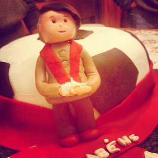 :: No passado dia 5 o meu papai fez uns belos 60 aninhos. A prenda da minha talentosa prima C. foi um bolo em forma de bola de futebol, com um cachecol vermelho (do Benfica) e com o meu papai a liderar. Nem a famosa boina faltou!