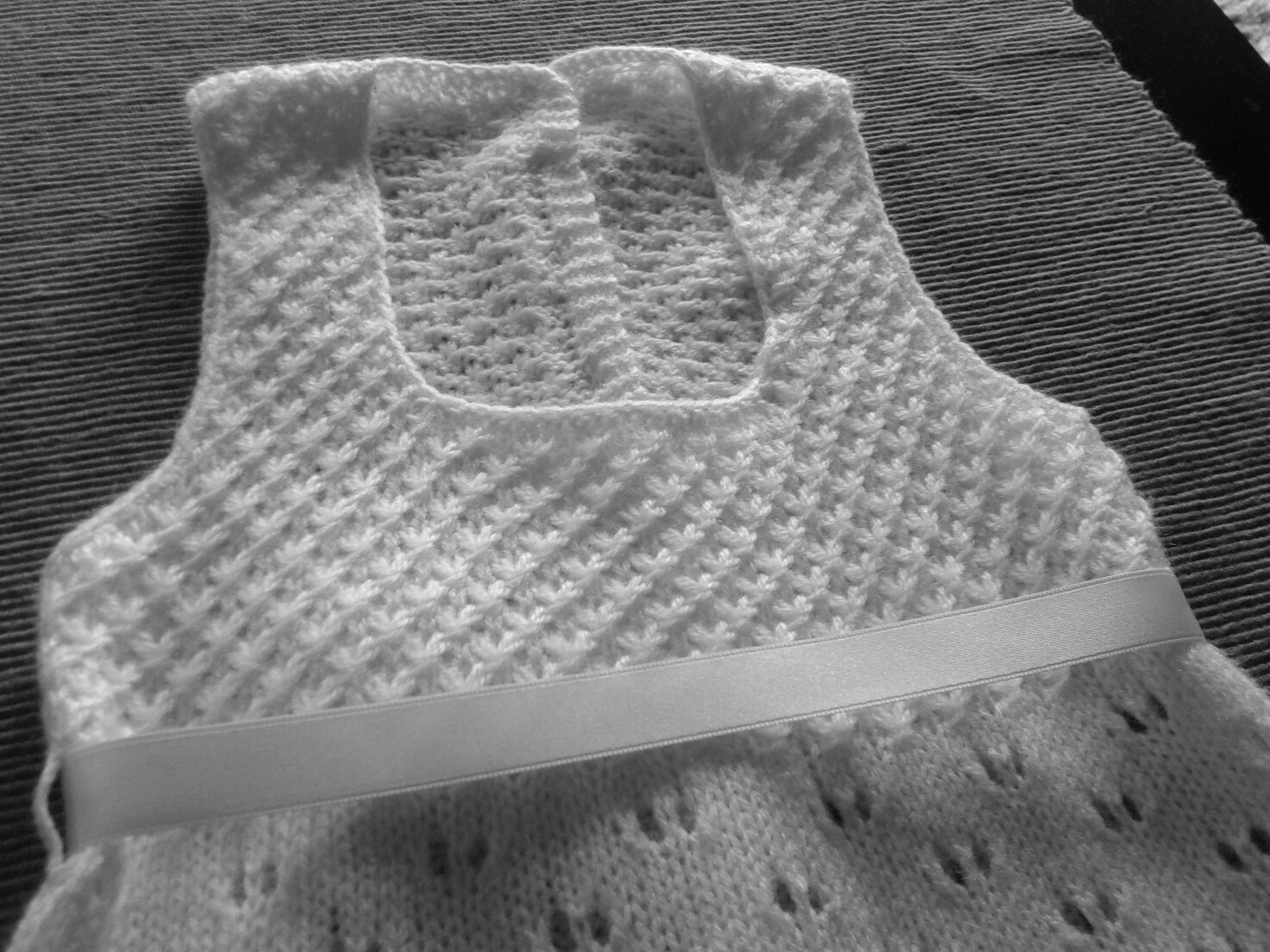 Today I finished the white baby dress pattern. I've never had opted for the traditional colours, but I've always imagined this little dress in white.